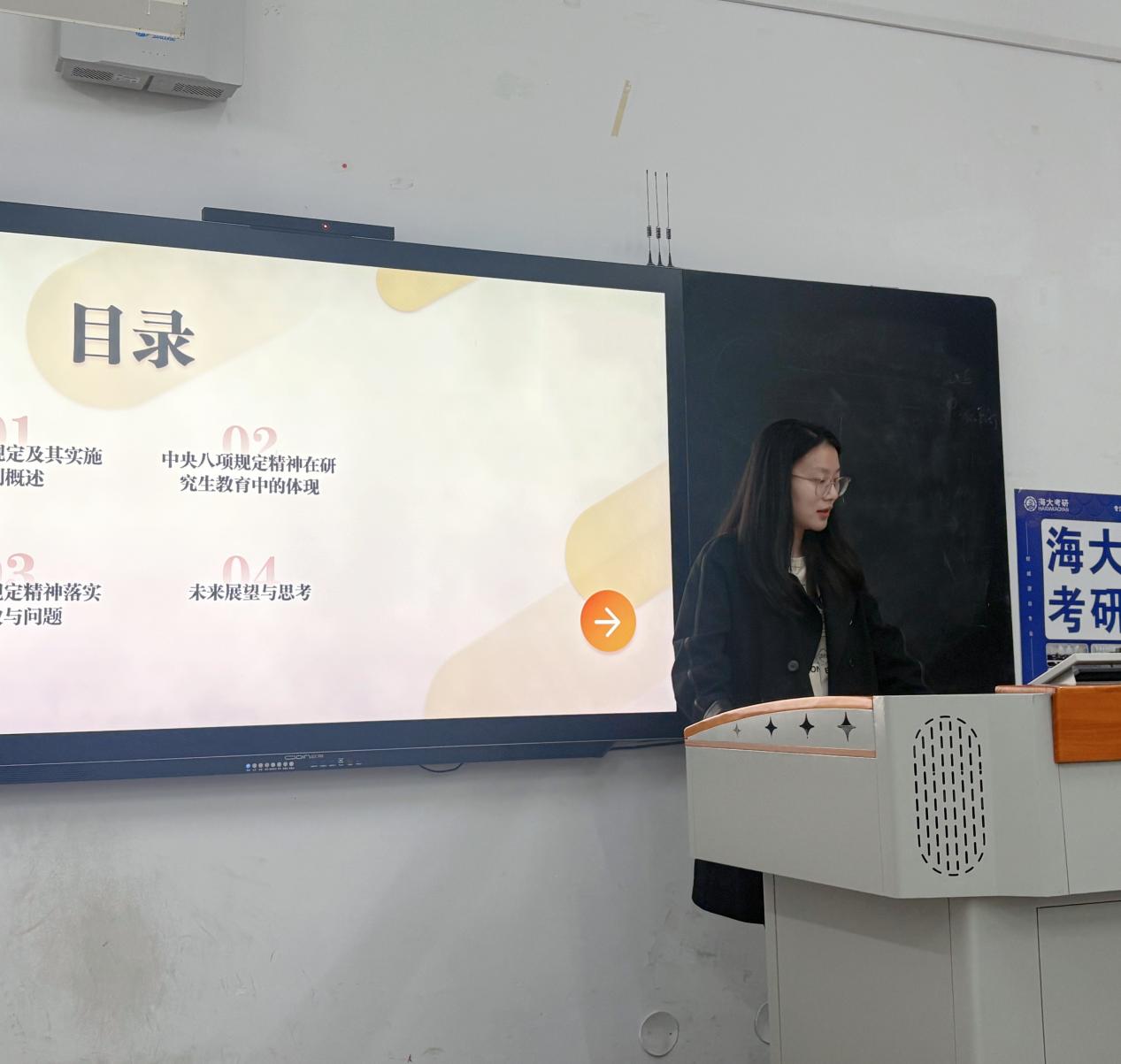 5月14日,Betano中文 研究生第一党支部书记张曼群讲授“学习领会和贯彻执行中央八项规定及其实施细则精神”专题党课,支部全体党员参加了本次党课学习。