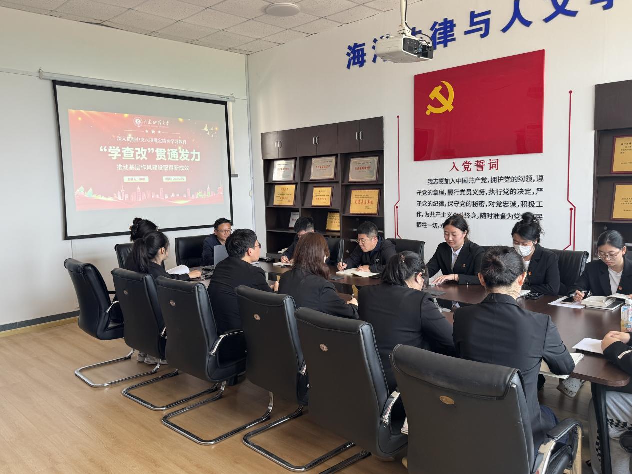为深入贯彻中央八项规定精神学习教育工作,5月21日,学院党委副书记、本科生党支部书记滕鹏以“学查改贯通发力,推动基层作风建设取得新成效”为题,在学院党员活动室为支部全体党员讲授专题党课。