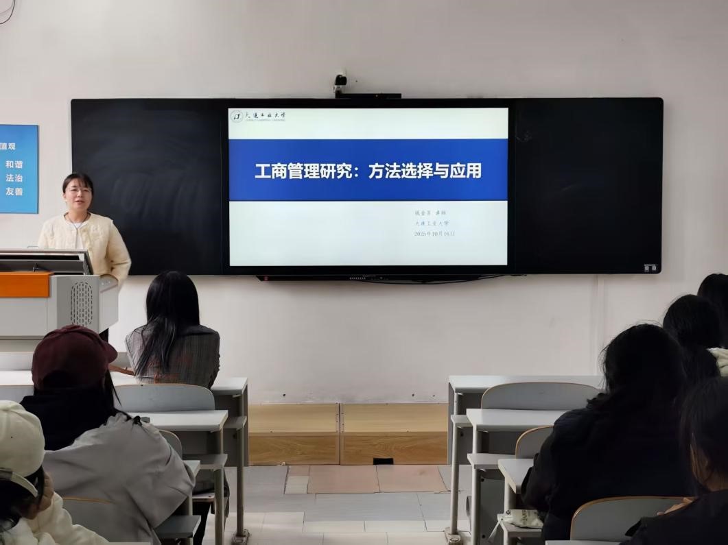 10月16日,Betano中文 在大黑石校区2教107室举办工商管理领域研究方法学术讲座。本次讲座特邀大连工业大学管理学院钱金芳博士担任主讲嘉宾,由陈晓颖老师主持。人力资源管理系主任杜鹏、法学综合实验教学中心主任官玮玮、社会学系副主任李伟侠及人力资源管理专业2024级全体学生参加。