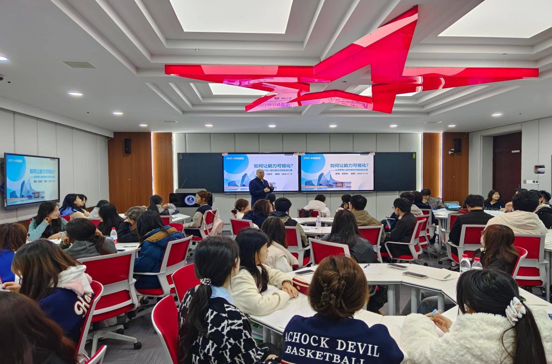 讲座中,刘老师重点强调了人工智能在当代职场中的关键作用。他提出,AI不仅是工具,更是能力可视化的催化剂。通过“AI+”多元场景的实战训练,学生可以快速构建个人品牌、提升职业竞争力,实现“学在实处,练在真处”。