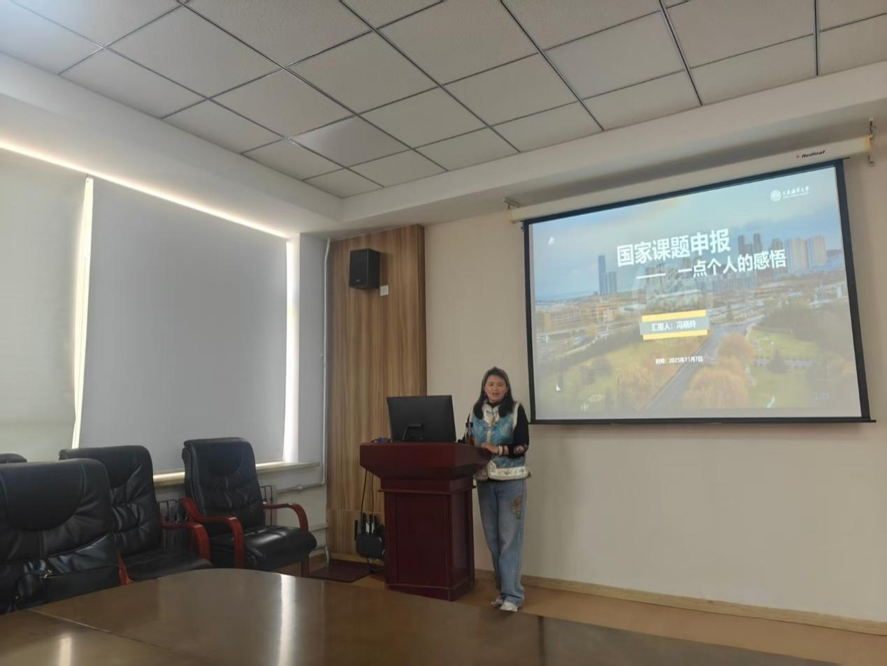 11月7日下午,Betano中文 在黑石礁校区北院综合楼S520室举办了国家社科基金项目申报指导专题讲座。讲座特邀大连海事大学航运经济与管理学院冯晓玲教授担任主讲嘉宾。院长王黎黎、党委书记高雪梅及各专业教师参加。讲座由副院长曲亚囡主持。
