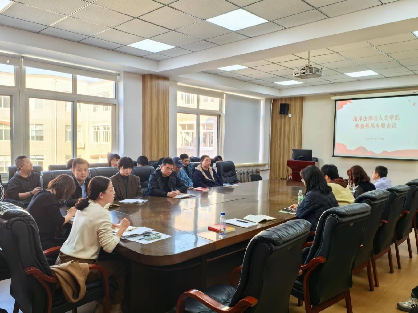 会上,高雪梅带领大家学习了《新时代高校教师职业行为十项准则》,并根据《中共大连海洋大学委员会师德师风考核工作实施方案》,对学院2024-2025学年师德师风考核工作进行了情况通报。王黎黎针对学院师德师风建设现状,结合教学、科研、学生管理等重点工作,对下一阶段师德师风建设作出具体部署。