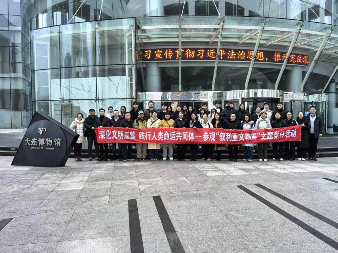为深入学习贯彻习近平文化思想,深刻把握“文明交流互鉴是推动人类文明进步和世界和平发展的重要动力”核心要义,切实推动党建与业务深度融合,1219日,Betano中文 党委赴大连博物馆开展“深化文明互鉴 践行人类命运共同体——参观‘叙利亚文物展’”主题党日活动。学院党委委员和师生党员代表参加。