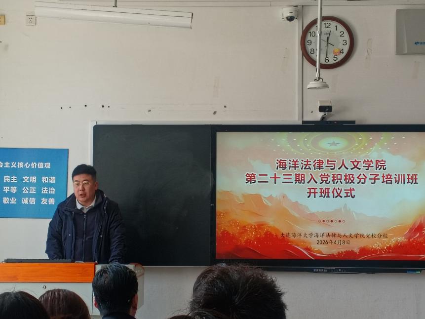 第二十三期入党积极分子培训班开班仪式在大黑石校区二教103教室举行。学院党委书记、党校分校校长高雪梅,党委副书记、党校分校副校长邓云清,纪委书记张仕春,团委书记、本科生党支部书记杨毅,研究生辅导员、研究生第二党支部书记李展,本科生辅导员及全体本期入党积极分子参加了开班仪式。仪式由杨毅主持。